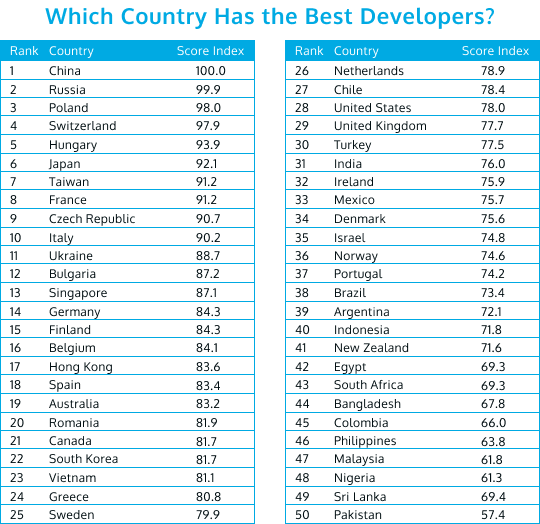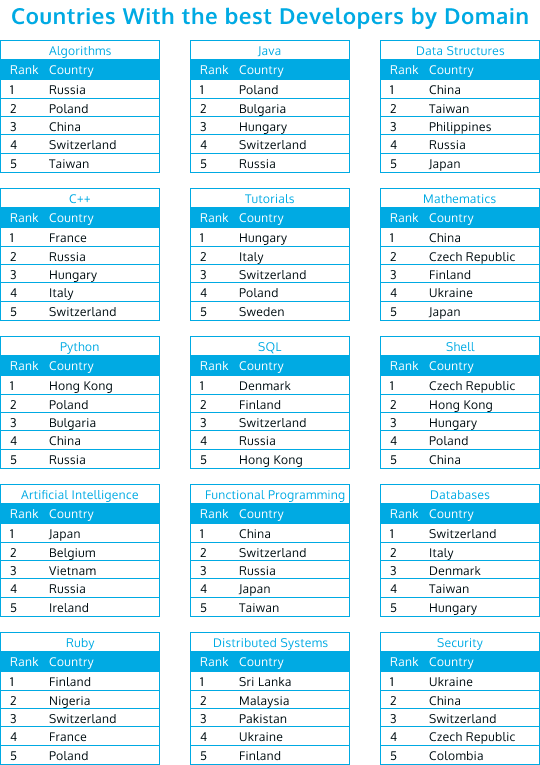 According to the conclusion of the international recruiting expert group called HackerRank, the Ukrainian developers are 11th in quality of their work, ahead of their German, American and Indian colleagues. The Ukrainians are especially successful in programming security issues (1st place in the World), as well as in the 4th place in mathematics and distributed computing.